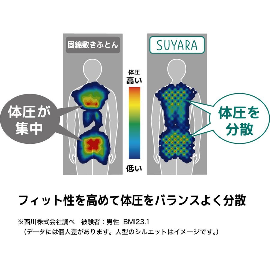 波形の凹凸構造が、背中・腰の体圧を分散しバランスの良い寝姿勢に。